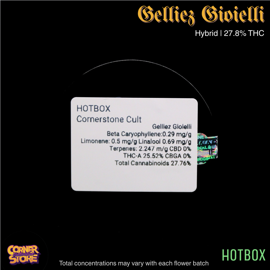 Gelliez Gioielli by Cornerstore Cultivation is a top-shelf hybrid blending smooth gelato-style lineage into a flavor that bursts with bright fruit and sweet cream notes. Expect an initial euphoric lift that gently glides into a calm, relaxed state — perfect for easing stress while staying engaged.