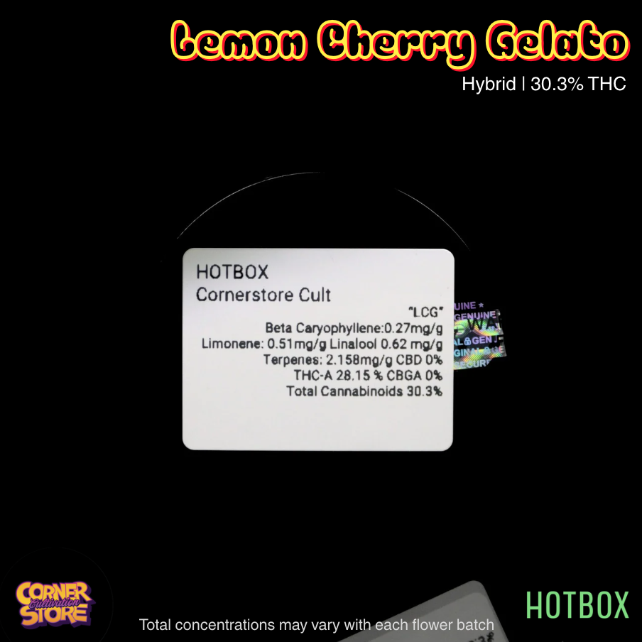 HOTBOX’S Prerolls (5 pk) LCG by Cornerstore Cultivation contain candy-rich hybrid joints, that are blended tart lemon and ripe cherry atop a creamy Gelato base, delivering bright bursts of citrus and berry with a subtle diesel-gas finish. Expect a lively cerebral uplift that gently settles into calm, relaxed body ease—ideal for mellow evenings with flavor front and center.