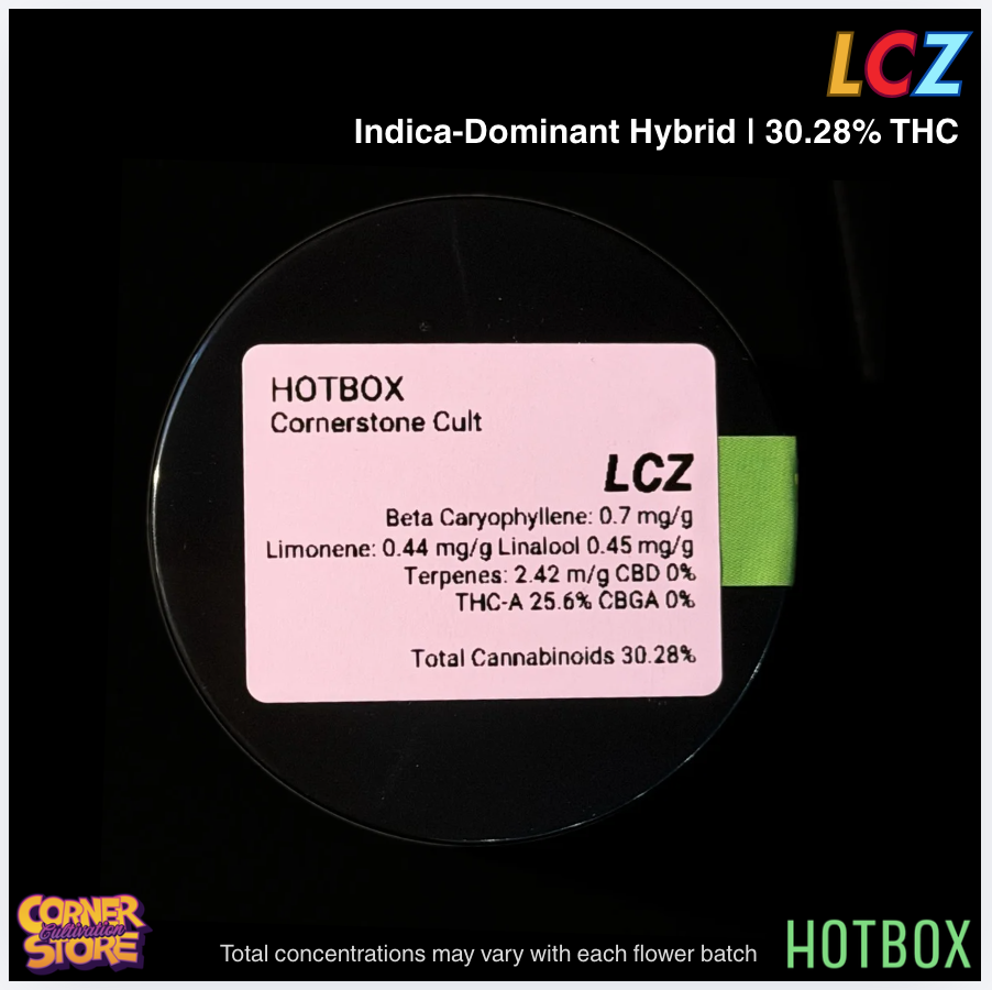 Lemon Cherry Zkittlez (LCZ) by Cornerstore Cultivation delivers a powerfully balanced experience that starts with an uplifting cerebral rush before melting into full-body relaxation. This exotic hybrid combines sweet lemon and cherry flavors with candy-like undertones, creating a deliciously smooth smoke perfect for unwinding after a long day.