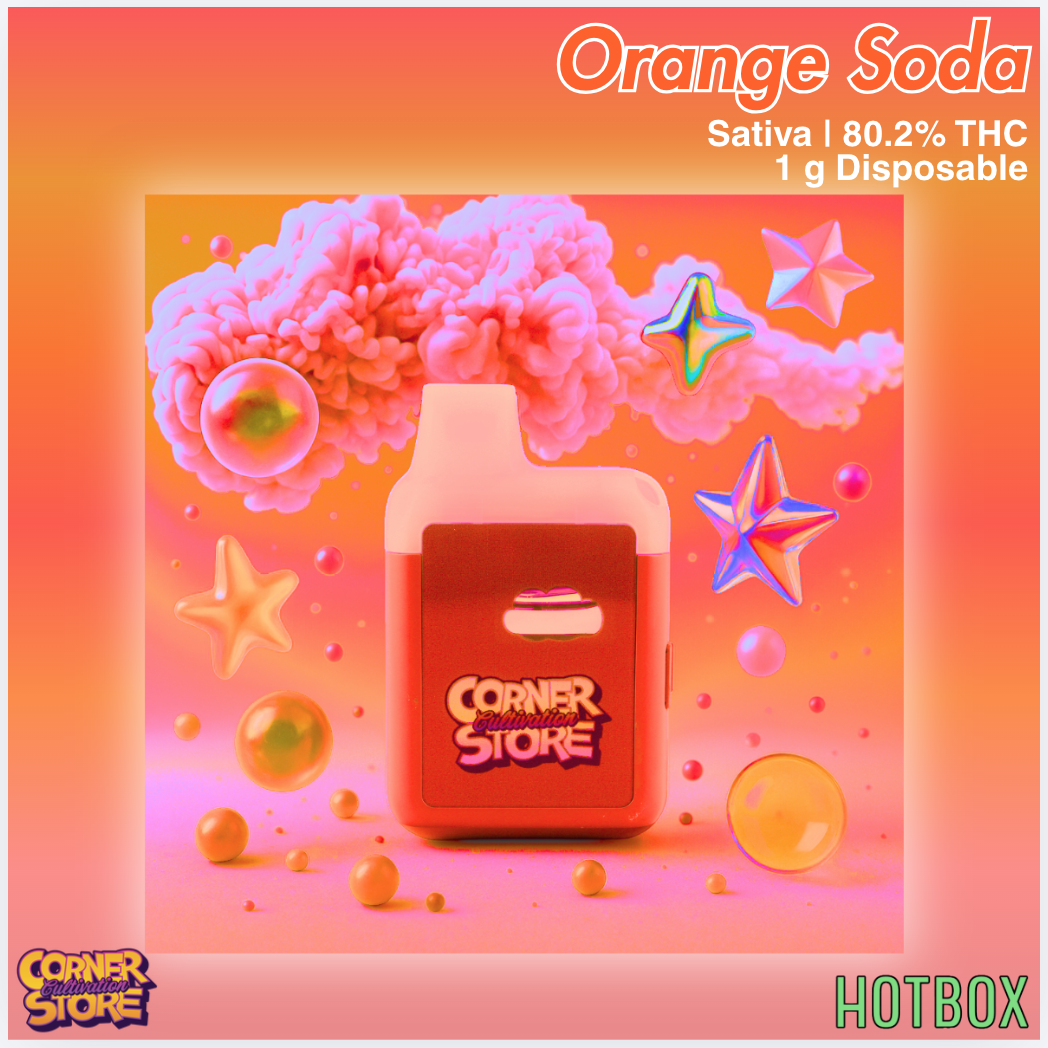 Orange Soda Disposable Vape (1 g) by Cornerstore Cultivation delivers a crisp, exotic burst of sweet citrus and fizzy orange candy with the smooth, top-shelf vapor quality you expect from DC’s premier cultivator. As a pure sativa, it brings an uplifting, energizing high perfect for daytime sessions and creative flow.