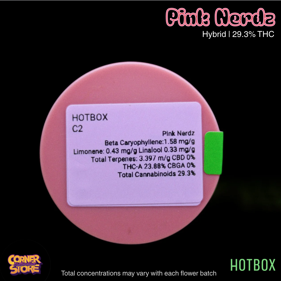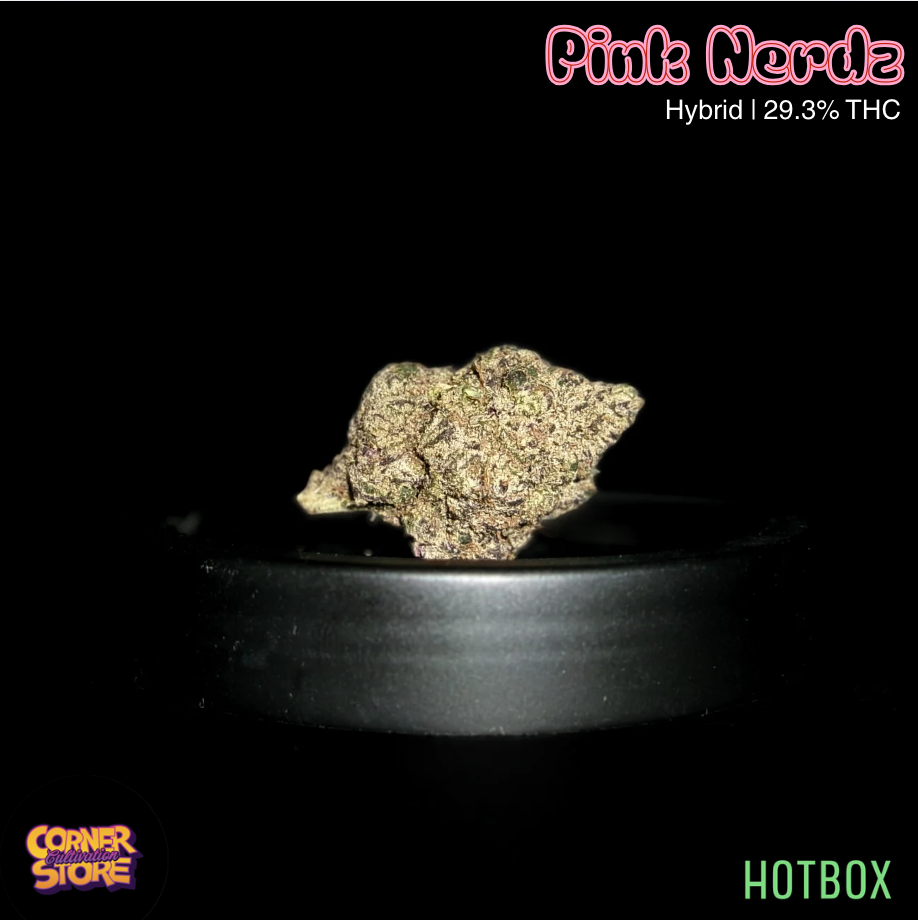 Pink Nerdz by Cornerstore Cultivation is flavor-packed hybrid blends zesty lemon candy notes with the signature sweet, fruity profile of Runtz. Expect a bright, uplifting cerebral buzz that smoothly settles into relaxed body ease, making it perfect for social sessions, creative flow, or a flavorful wind-down without heavy sedation.