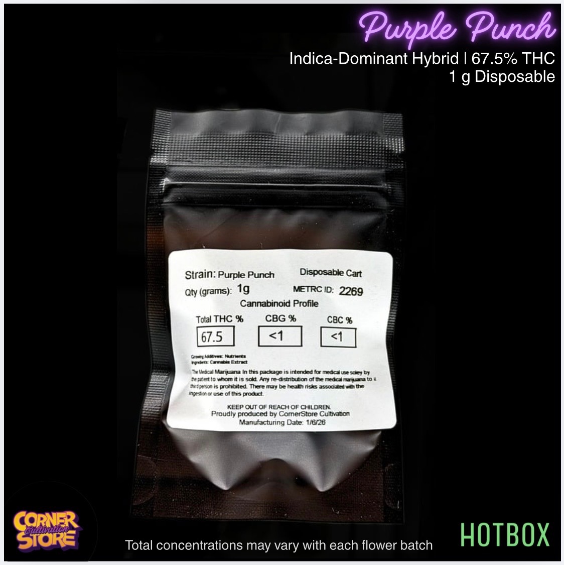 Purple Punch Vape (1 g) by Cornerstore Cult (Indica)