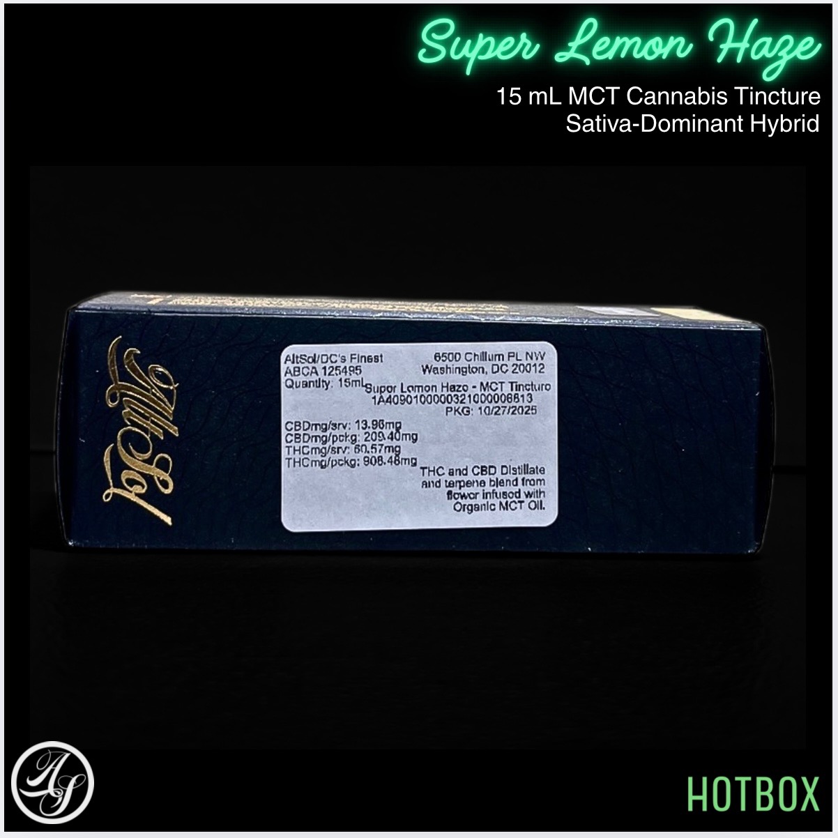 Super Lemon Haze MCT Gold Tincture (15 mL) by AltSol is a sativa-dominant, top-shelf THC and CBD distillate and terpene flower blend infused with organic MCT oil, which is crafted from the classic Lemon Skunk × Super Silver Haze genetics. This tincture delivers uplifting, clear-headed effects that support focus, creativity, and an energized mood, making it ideal for daytime use. Fast-absorbing MCT oil provides smooth, consistent dosing with a clean, long-lasting finish.